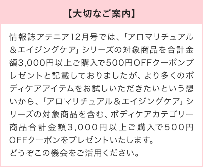 ※『アロマリチュアル&エイジングケア』シリーズの対象商品を含まない場合、キャンペーンの対象外となります。