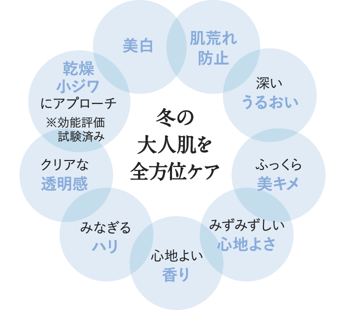 背筋がシャンと伸びるような、澄みきった冬の空気感にひときわ映えるのは、透明感にあふれた肌。見る人を惹きつけるその美しさを、冬の集中美白ケアで叶えませんか?