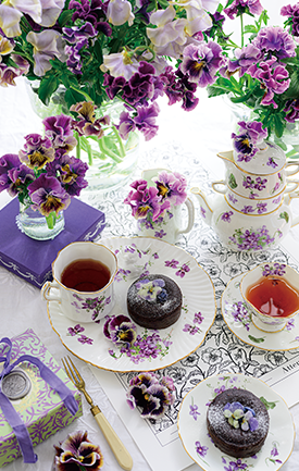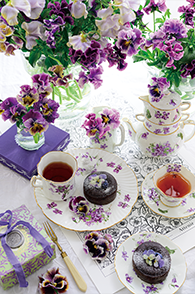 甘いチョコレート菓子と、英国アンティーク、ハマースレイの優雅なすみれのティーセット。