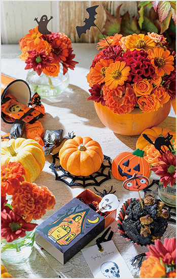 にぎやかでちょっぴり不気味な空気に包まれながら、「Trick or treat」の声が聞こえてきそうなお菓子の贈りものを用意しました。骸骨や魔女などハロウィンが“スプーキー”なのは、怖がらせるためだけではなく、悪霊を追い払い、季節の変わり目を無事に過ごすための古くからの知恵。