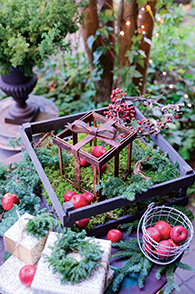 プレゼントの箱には、リボンの代わりに小さなクリスマスリースを添えて。