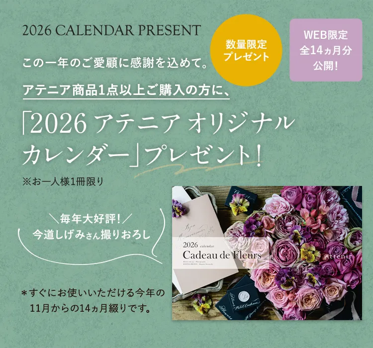 TOP > キャンペーン・新商品 > 2026 アテニア オリジナルカレンダー プレゼント