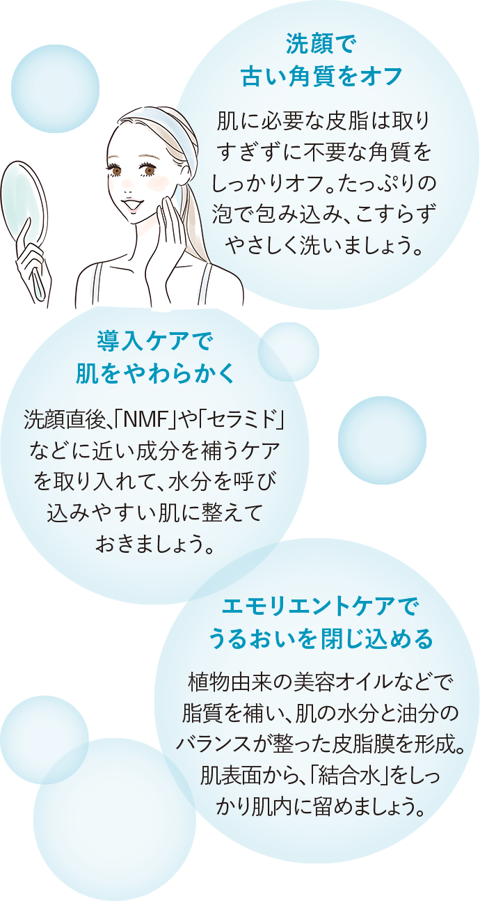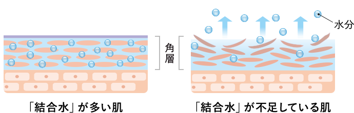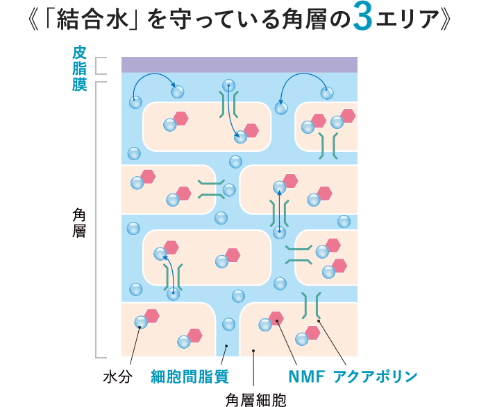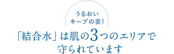 肌に与えられたうるおいは、3つのエリアでキープされることで「結合水」となります。