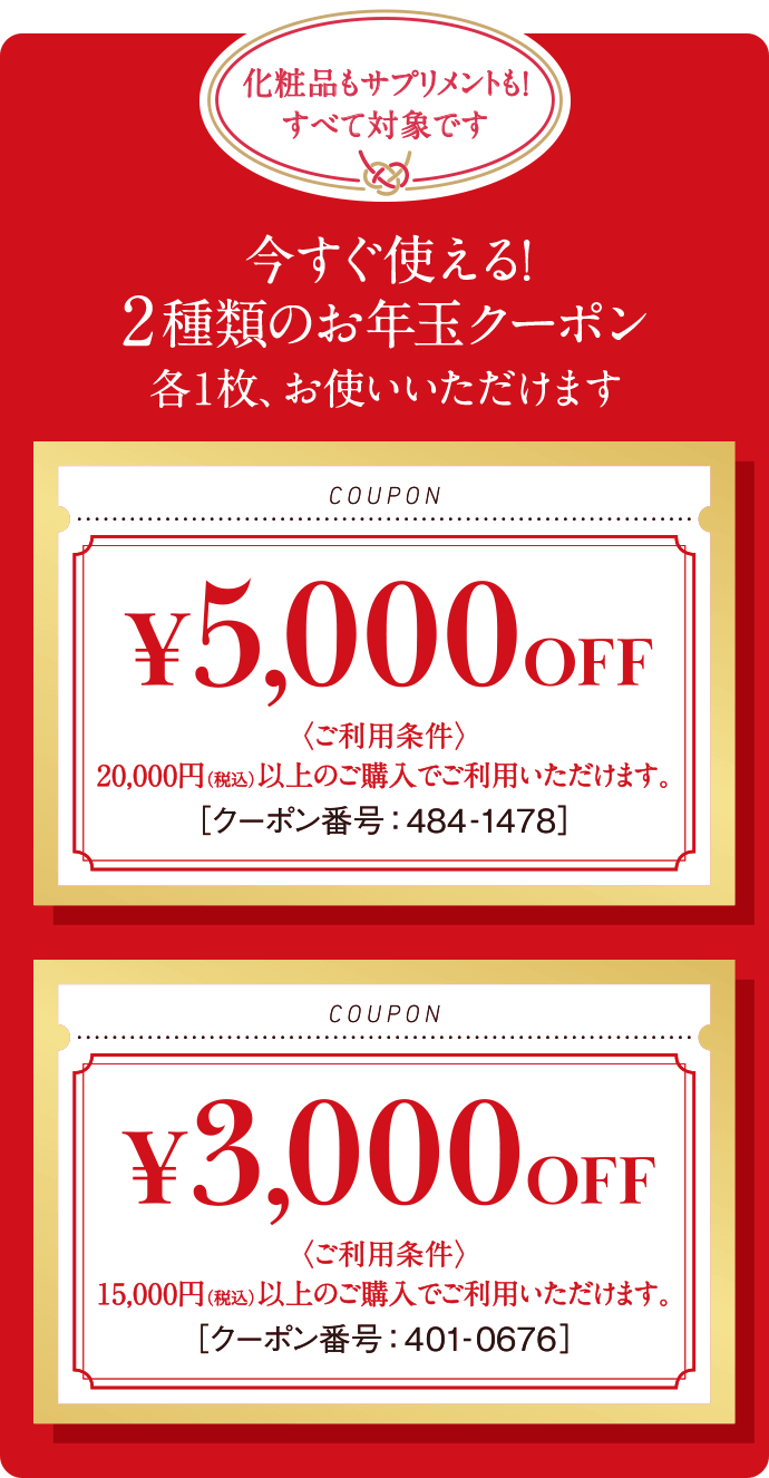 ※期間中「3,000円OFFクーポン」「5,000円OFFクーポン」とも、お一人様1回限り。