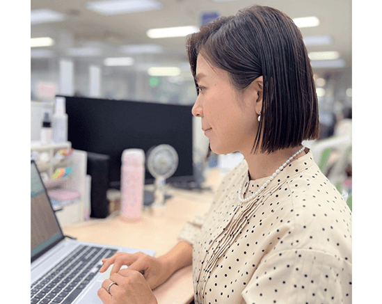 お客様からのお電話をお受けするオペレーターを指導・育成する立場として、いつも伝えていることがあります。それは、相談しやすい“雰囲気”を心がけること。目の前にお客様がいらっしゃると想像して笑顔で応対すると、その雰囲気は声に乗って伝わるものだからです。プライベートでも、他社のお客様窓口を利用する時は、そんな雰囲気も含めて自然とチェックしてしまいます。外出先で、お客様向けの館内アナウンスについ聞き入ってしまうことも多く、気づくと仕事モードになっていますね。