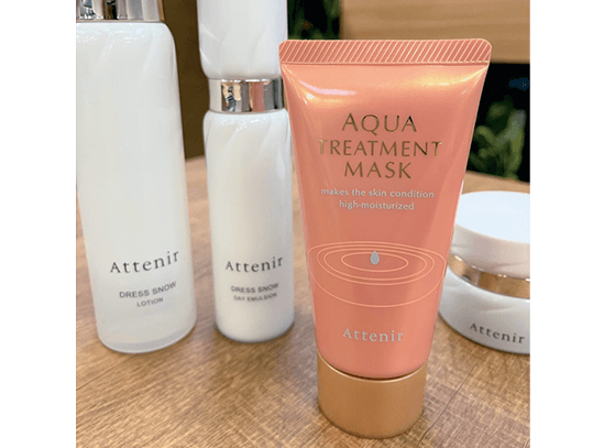 小さいお子様がいらっしゃるお客様にとって、スキンケアはシンプル重視。たっぷりうるおう『アクアトリートメントマスク』は、長年ご愛用いただいている方が多い“隠れた名品”です。