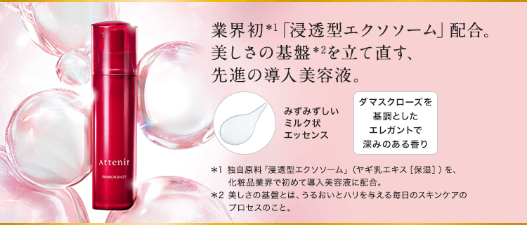 - ○朝・晩の洗顔後、スキンケアの最初に2~3プッシュ分を手にとり、顔全体になじませてください。