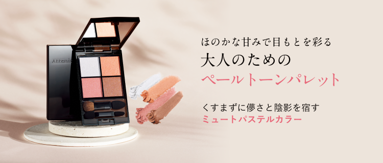 - 加齢とともに崩れる、まぶたの黄みと赤みのバランスに着目。密かに赤みを潜ませる「ウォーミング設計」でまぶたのくすみを払拭し、濁りのないクリアな発色を叶えます。