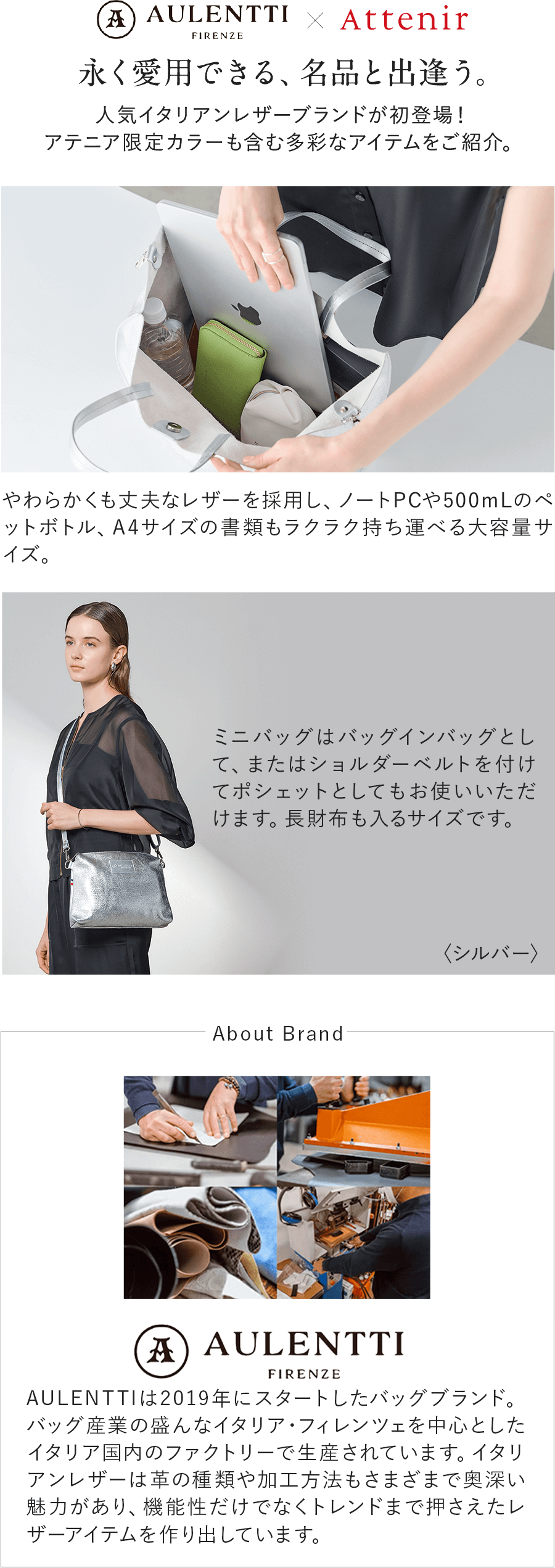 しなやかなレザーが煌めくトートバックと、ショルダー付きミニバック