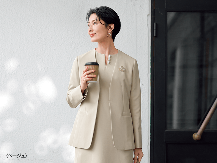 ●素材/表地:ポリエステル90%、ポリウレタン10%、裏地:ポリエステル100% その他付属:ブローチ付(留め具/風車式)