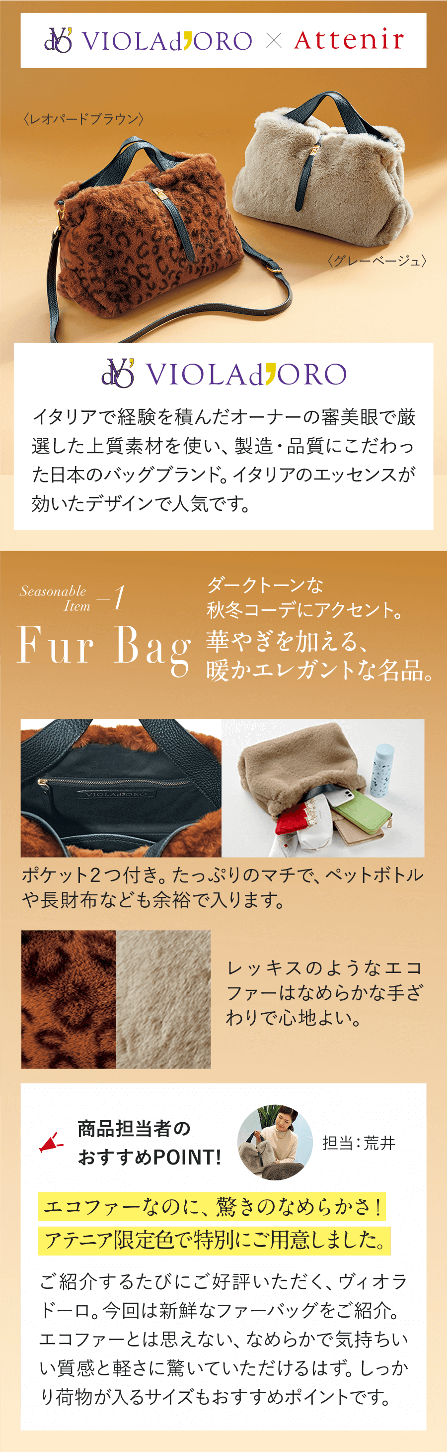 本物のようなレッキス風エコファーバッグはマチが広く内ポケット付きで、ななめ掛けもできる使い勝手の良さにもこだわった逸品。