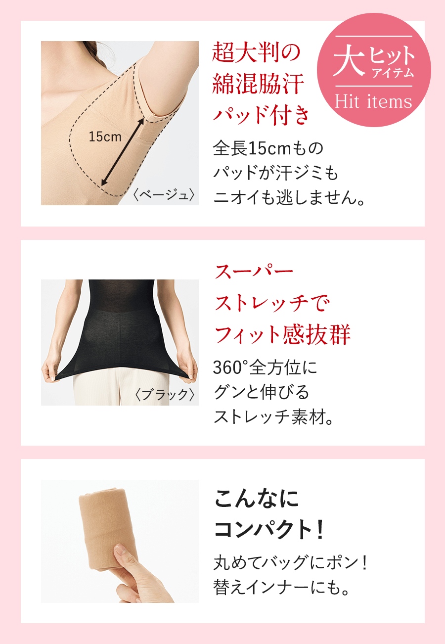 ニットのインナーに大活躍!汗ジミ&ニオイをしっかりカバー