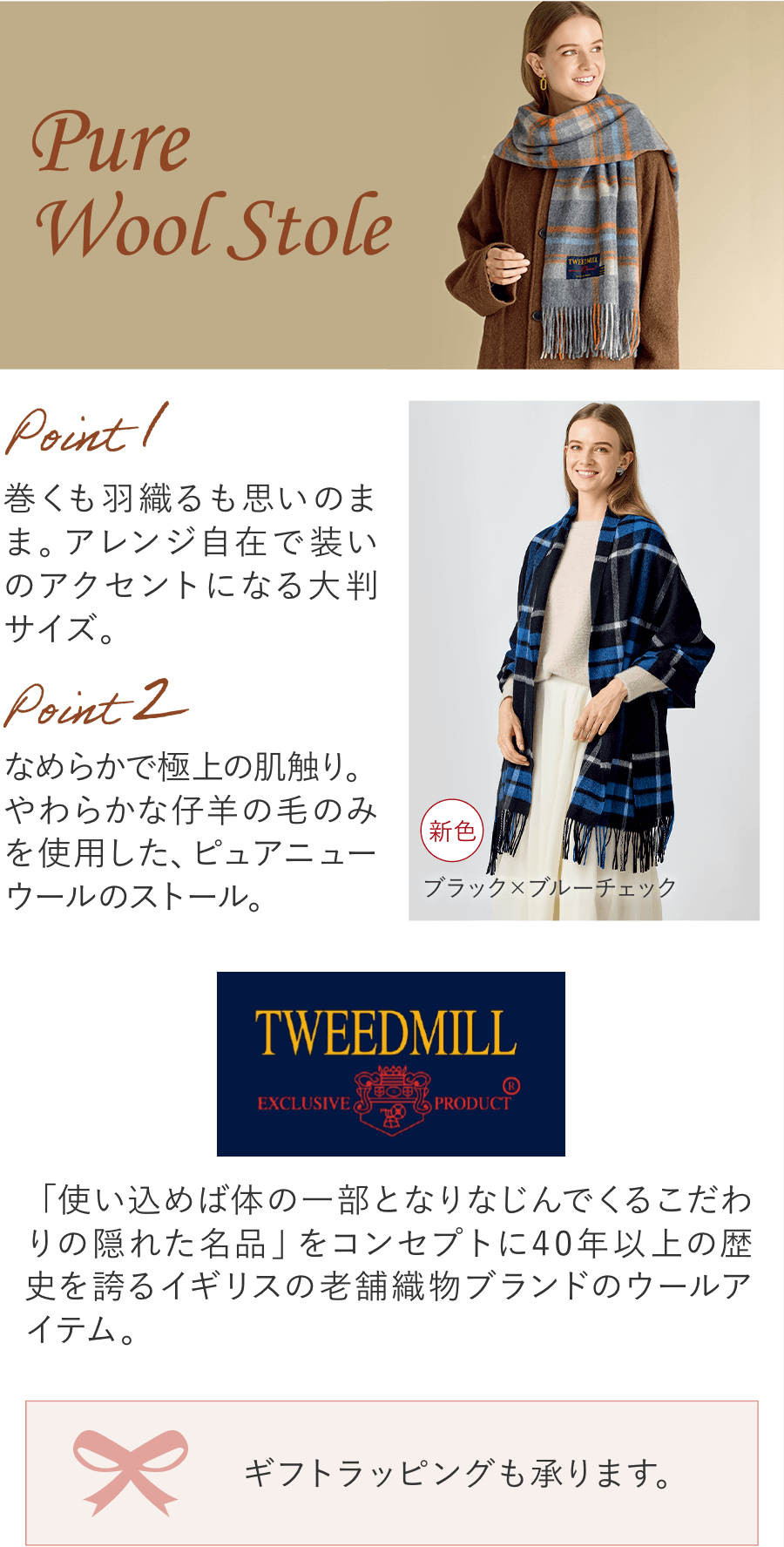 大好評! 英国老舗の上質ウールブランド“ツイードミル”で首もとを華やかに、あたたかく。