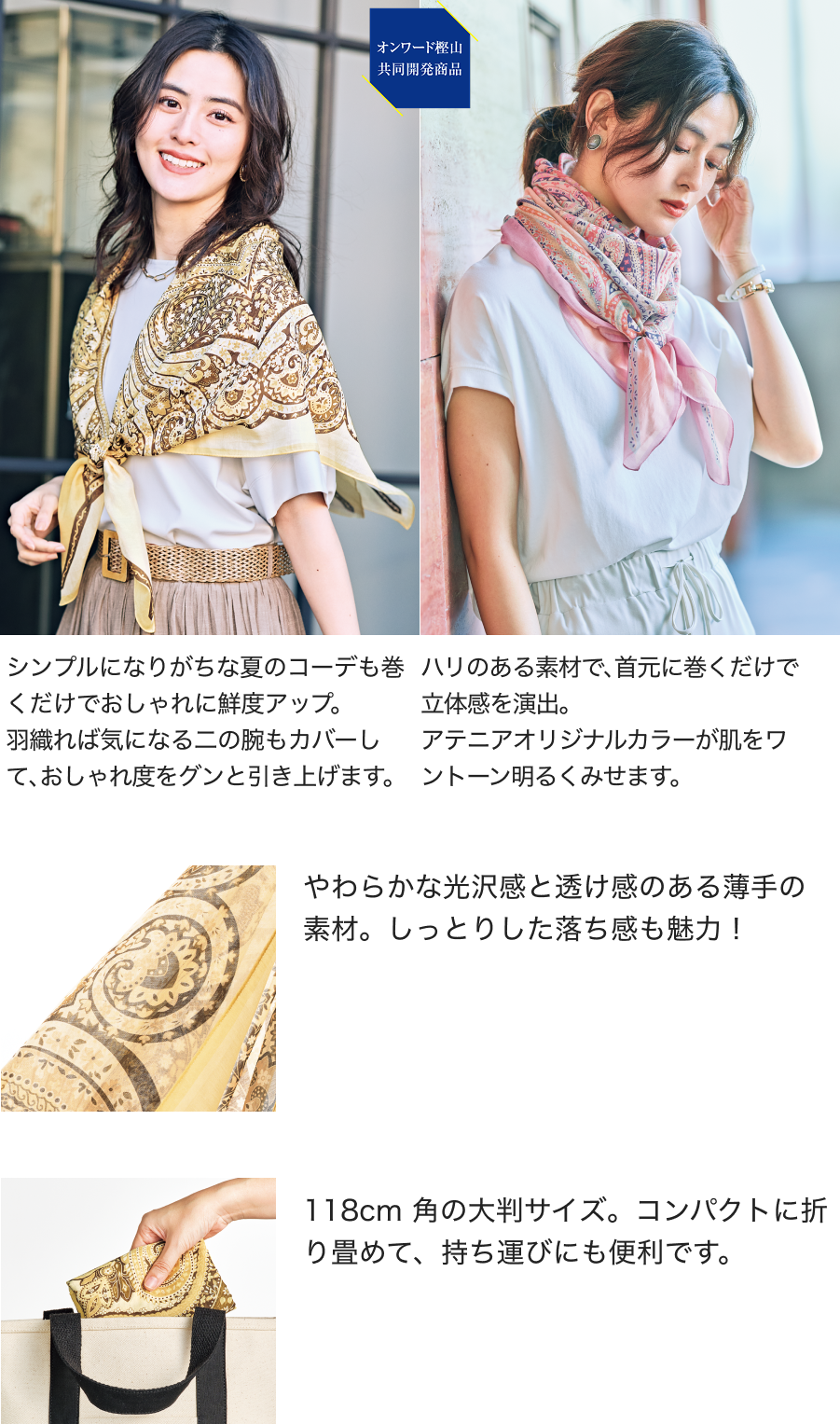 有名ブランドも手がける国内の工場で丁寧に仕上げたストールは、薄手で透け感があり、夏場でも涼しげに感じます。