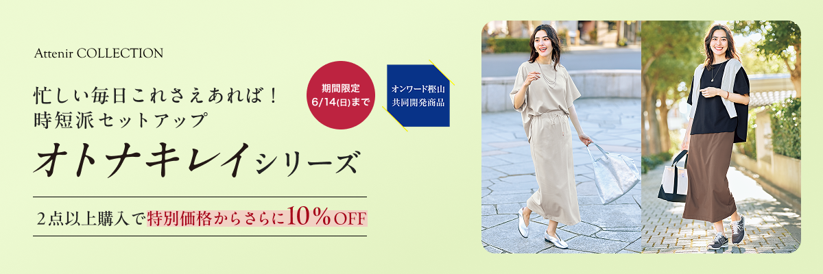 大人女性をスタイルアップさせるこだわり設計も特徴です。セットアップで揃えると、コーデに悩まずさっと身支度ができて便利!