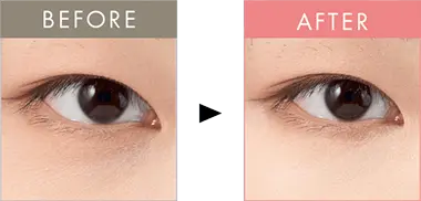 目の下のクマはもちろん、ピンクパールのレフ板効果で目まわり全体をトーンアップ。目尻のもたつきもスッキリ見え、リフトアップした印象に。