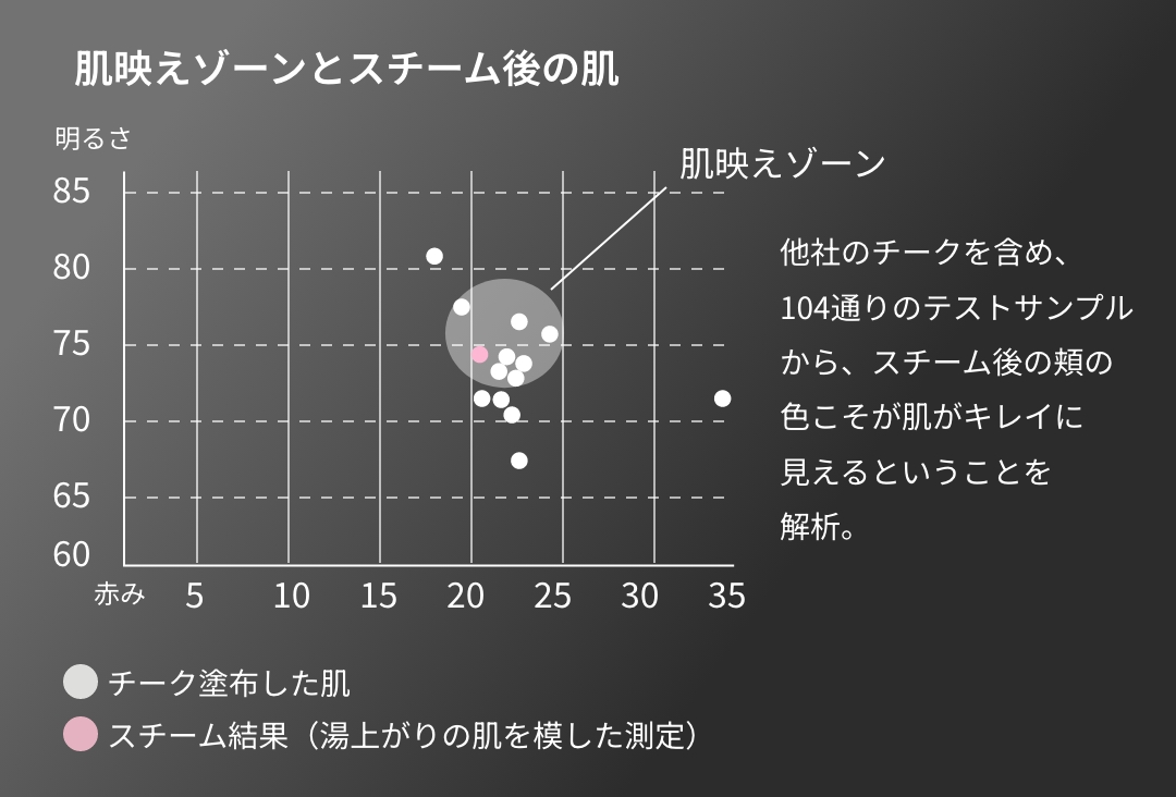 スチーム後の頬の色こそが肌がキレイに見えるということを解析。