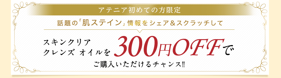 指でくるくるして「あたり」が出たら300円OFF「参加賞」でも100円OFFでスキンクリア クレンズ オイルをご購入いただけます。